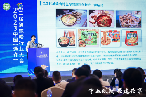 河南品正食品科技有限公司作为调料大亨,是酸辣粉及速食产业不可或缺的好搭档。面对主持人关于创新共建问题的提问,河南品正食品科技有限公司总经理陈静表示,品正在助力酸辣粉行业发展这条路上,将永远保持奋斗者的精神,脚踏实地,接硬仗打胜仗。以口味创新为主,去挖掘更健康的食材,用更能够保护健康食材风味与营养的工艺,持续创新打造高性价比产品,推动酸辣粉行业健康发展。