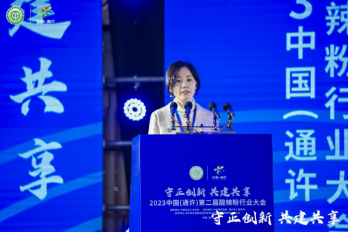 中国食品工业协会秘书长助理、企业发展部主任沈志勇在致辞中表示,酸辣粉产业作为通许县大力发展的特色食品产业,发展前景广阔。今年2月,中国食品工业协会与通许县共建“中国酸辣粉之都”,见证了通许酸辣粉产业在不到一年的时间,从小到大,从弱变强,产业园区从无到有,产业集群愈发显著。今后,中食协将一如既往地加强与通许县的沟通联系,相互协作,携手共同谱写通许酸辣粉产业发展的新篇章,形成品牌效应,产业号召,共同为实现新时代我国食品工业高质量发展作出贡献。