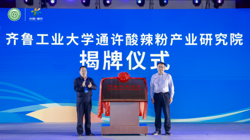 (齐鲁工业大学通许酸辣粉产业研究院揭牌仪式 左侧:张云涛 右侧:崔波)